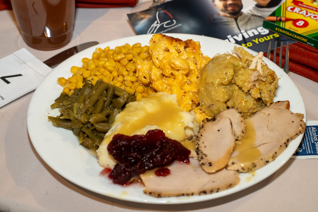 From the moment guests arrived at The Third-Degree Glass Factory, the atmosphere felt like family. Volunteers greeted everyone with warm smiles, music filled the room, and beautifully prepared Thanksgiving plates were served with the care and hospitality you’d expect at a holiday table back home. Every detail, from the food to the décor to the service, reflected love, intention, and dignity.​